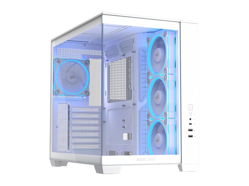 Skriňa ASUS A32 PLUS ATX ponúka podporu pre 360mm radiátory a 420mm grafické karty, s možnosťou výberu čiernej alebo bielej farby, štyrmi predmontovanými ARGB ventilátormi a čistým vedením káblov.
