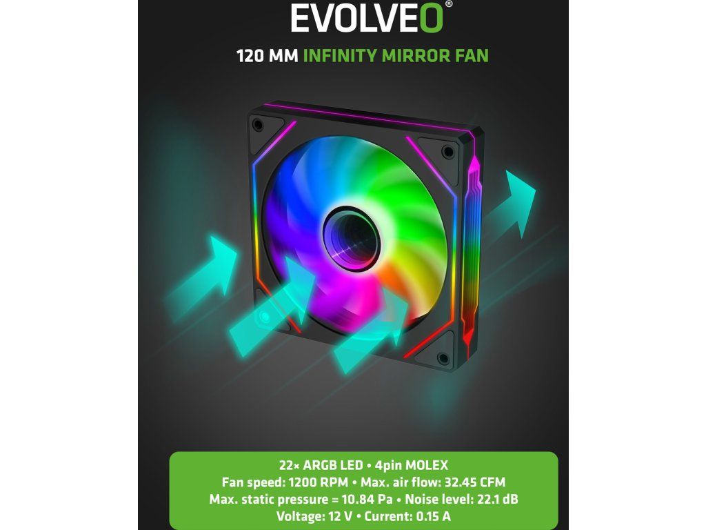 EVOLVEO 120UX-S ventilátor 120mm, 4pin molex, ARGB, slave, černá
