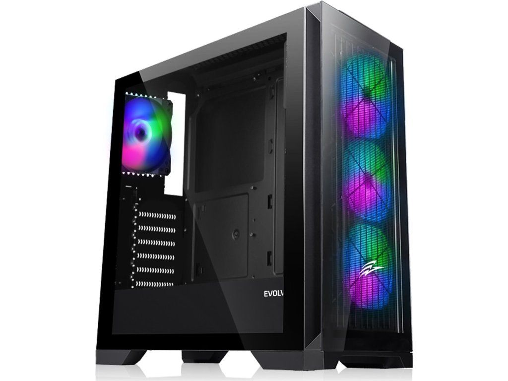EVOLVEO Ptero Q2G, skříň ATX, 4x ARGB ventilátor, čelní+boční panel sklo, černá