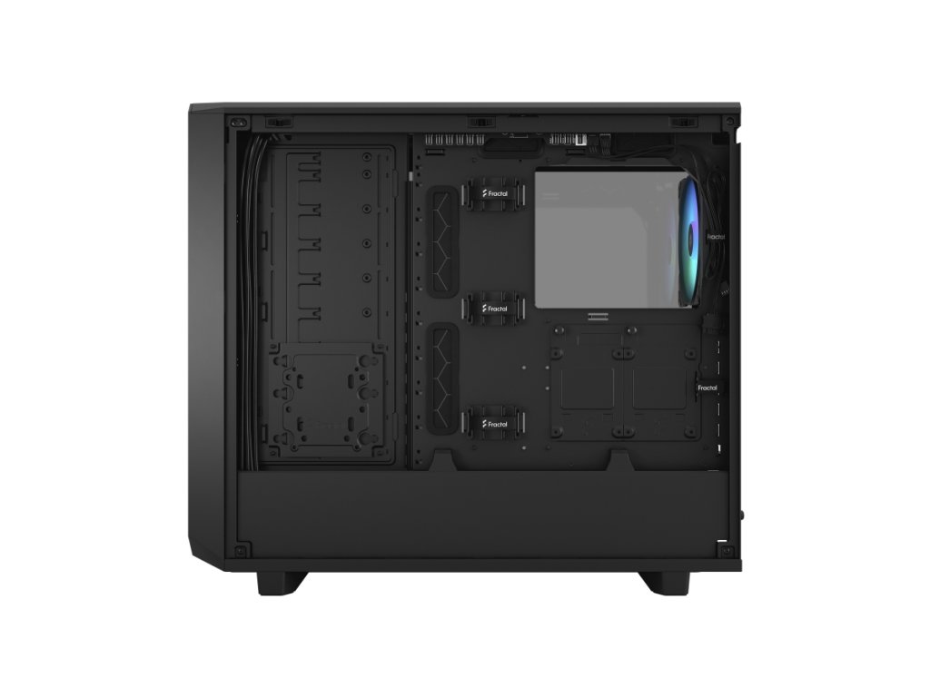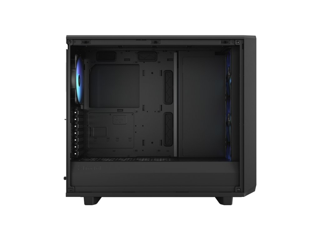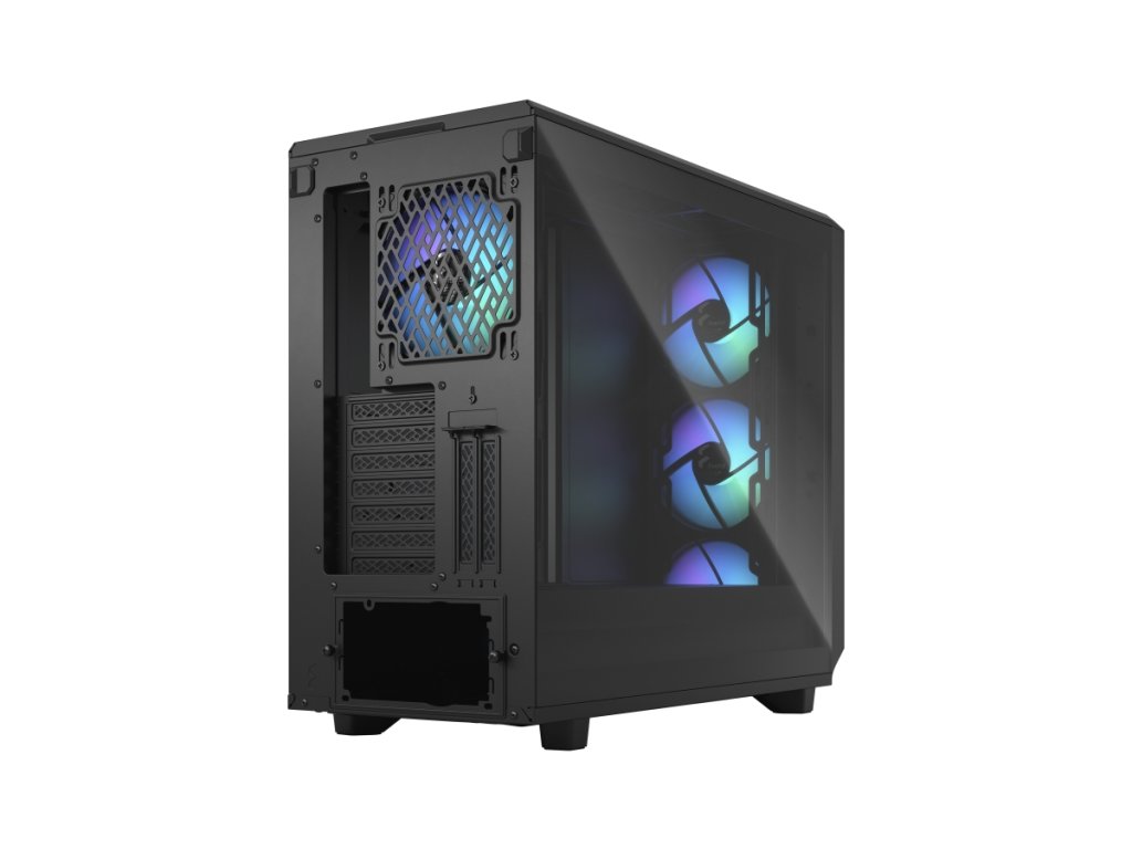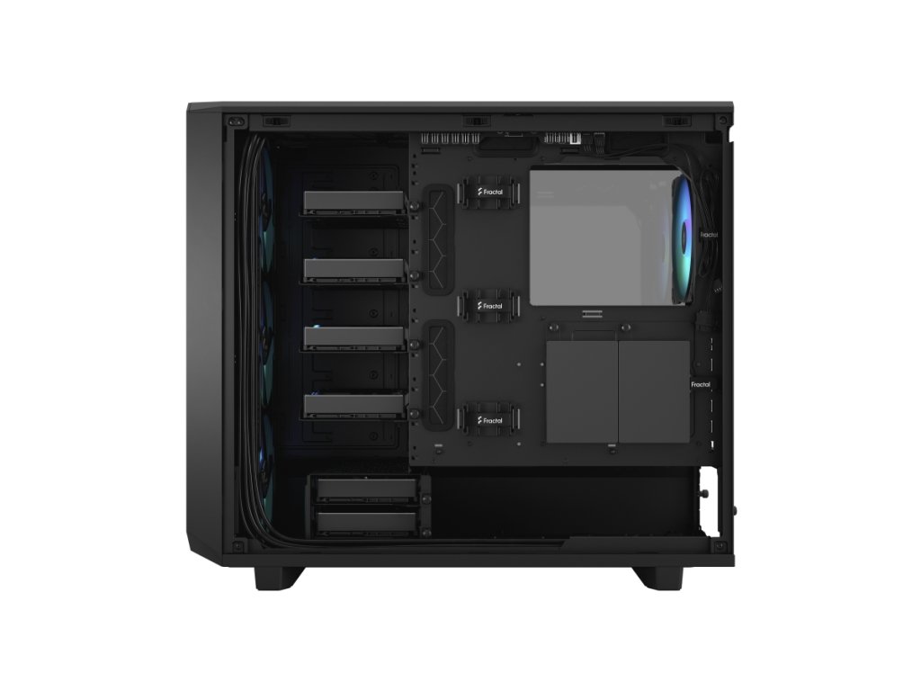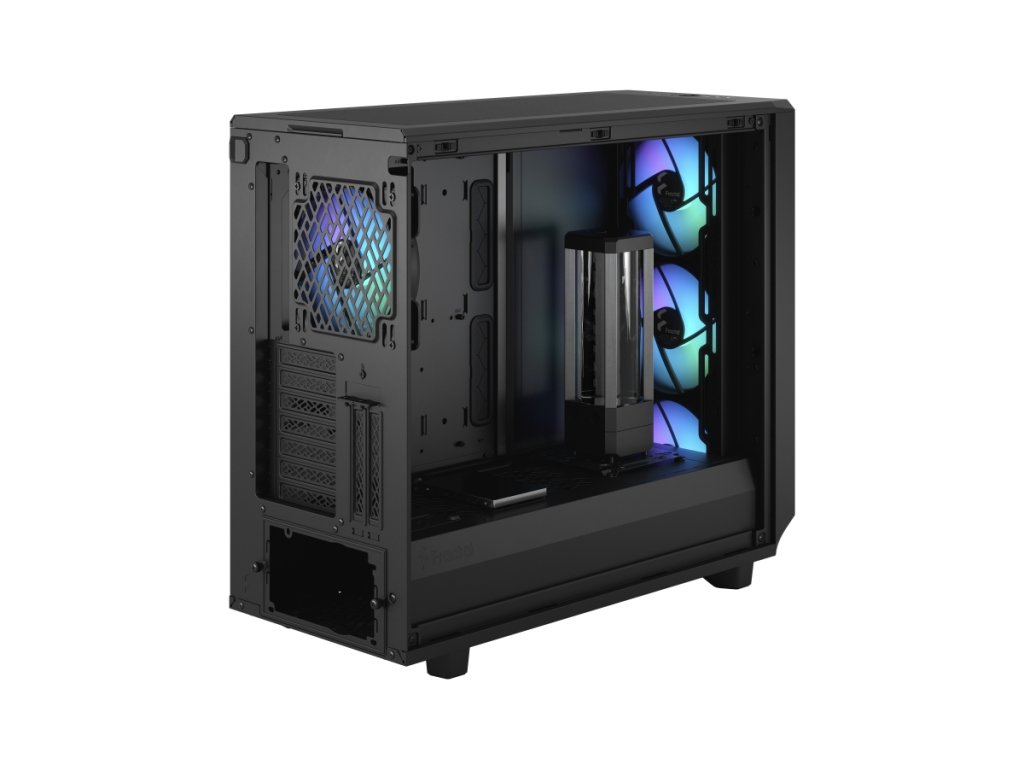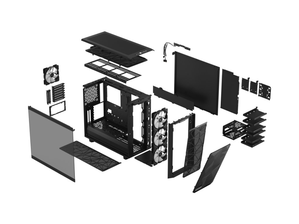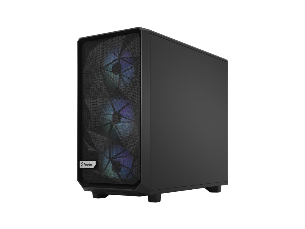 Meshify 2 RGB je vysoce výkonná skříň s odvážným estetickým vzhledem inspirovaným technologií stealth. Její nápadný exteriér je vybaven zapuštěným tvrzeným sklem bez šroubů, plně odnímatelnou horní částí poskytující vynikající přístup do interiéru a přední částí s USB-C, výklopným síťovým panelem a odnímatelným nylonovým filtrem. Flexibilní dvouvrstvý interiér podporuje velká úložná pole a sestavy s více chladiči, díky nimž je chlazení hračkou.