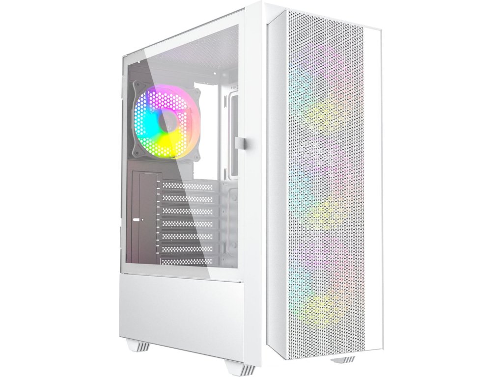 Gembird Fornax 4000 ARGB/Midi Tower/Transpar./Bílá