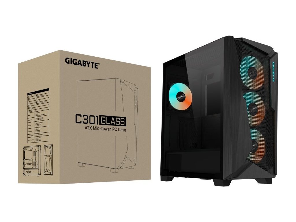 GIGABYTE case GB-C301G V2, Mid Tower, 1xUSB-C 3.2, 2xUSB 3.0, ARGB Hub, 4x 120mm ARGB Fan, černá