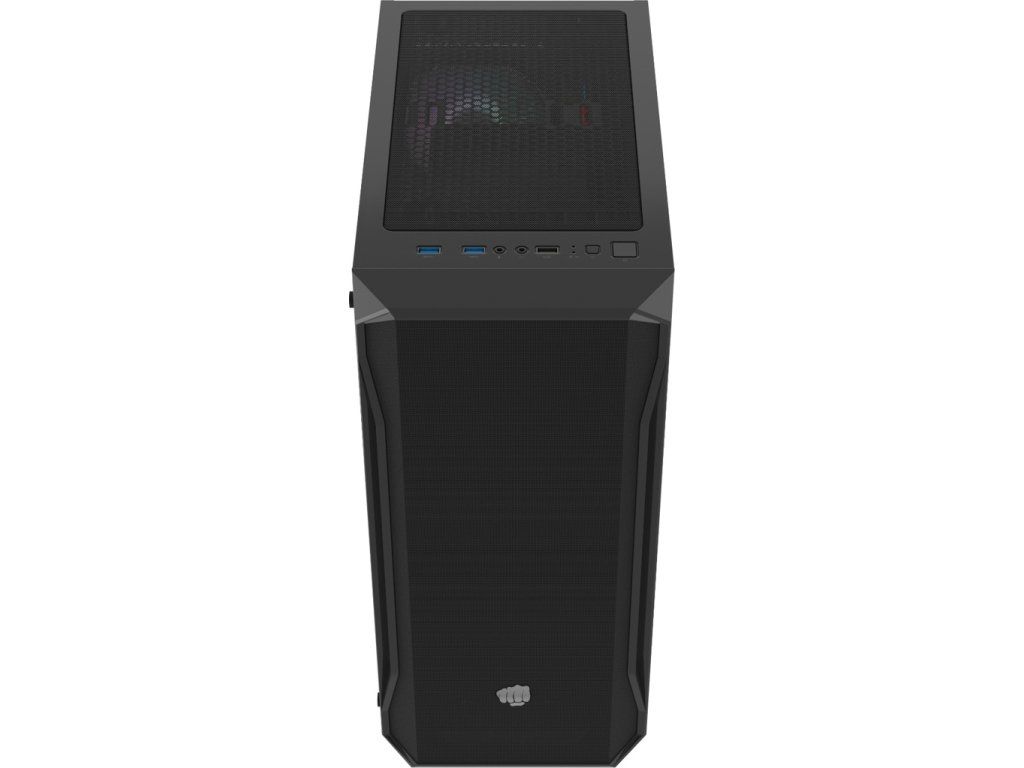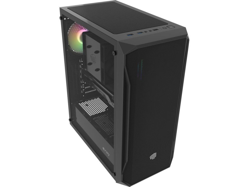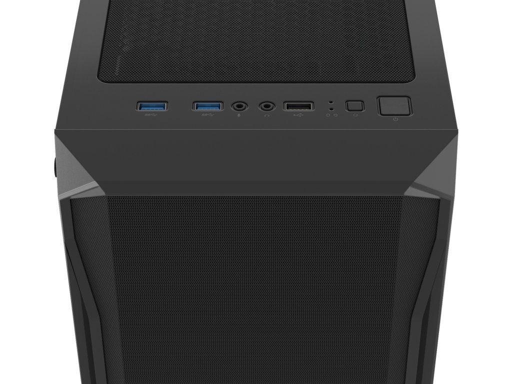 Futuristický geometrický tvar se bude líbit jak hardcore hráčům, tak i těm, kteří dávají přednost decentnějšímu designu. Levý boční panel z tvrzeného skla je příležitostí k odhalení vnitřku skříně a výkonných komponent ukrytých uvnitř - také s RGB, zejména proto, že instalovaný ventilátor je předsvícený.