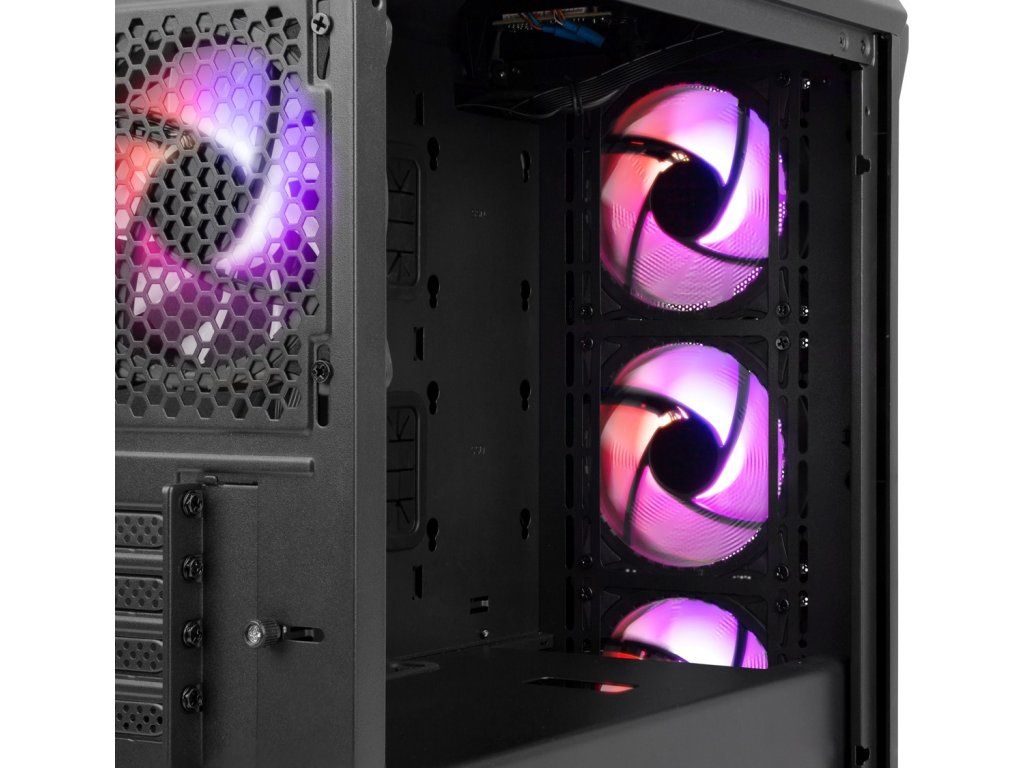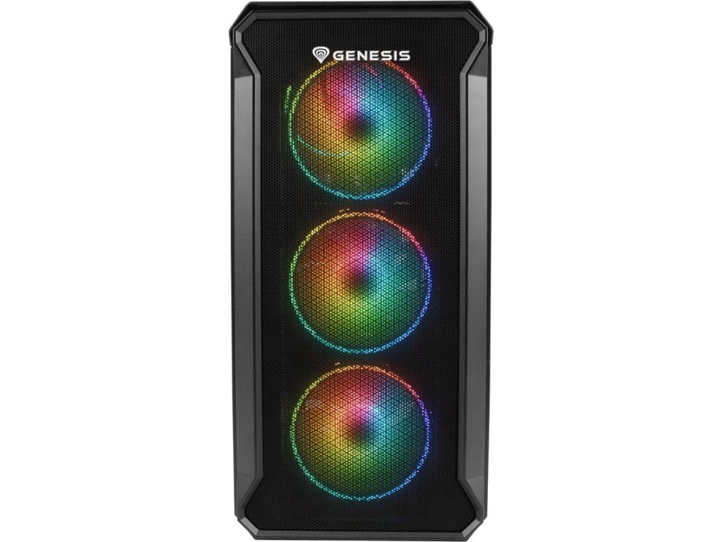 Irid 503 ARGB V2 je vybaven perforovanou přední stranou a boční panel je vyroben z čirého tvrzeného skla. Díky tomu je možné mít neustále přehled o pracovních komponentách. Skříň je vybavena 4 ventilátory Genesis Oxal ARGB 120, které se starají o vhodnou cirkulaci vzduchu.