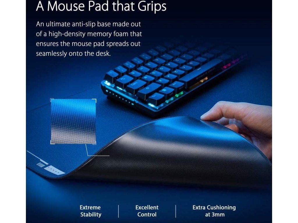 Herná podložka pod myš ROG Hone Ace XXL Aim Lab Edition je navrhnutá tak, aby spolupracovala s úlohou Aim Lab X ROG 360 a pomáhala hráčom zlepšiť ich zamieranie. Hone Ace XXL má hybridný textilný povrch pre hladší sklz a lepšiu kontrolu, povrchovú ochrannú nano vrstvu odpudzujúcu vodu, olej a prach a mäkkú protisklzovú gumovú základňu.