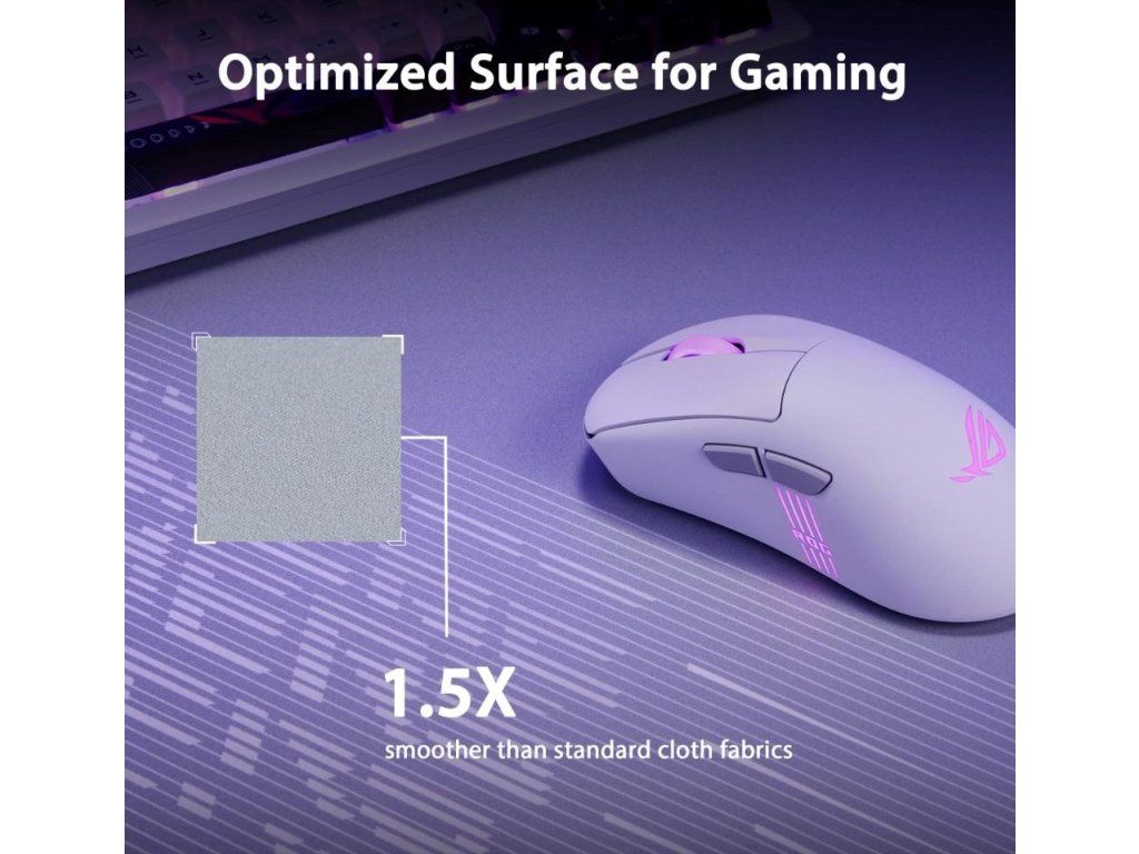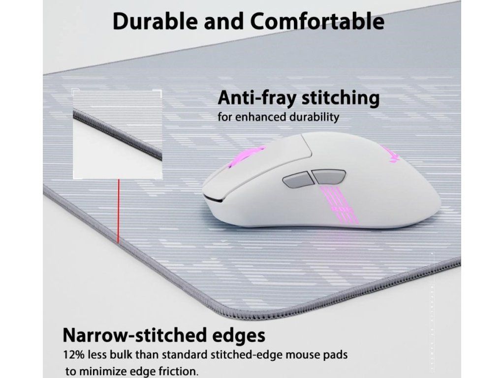 ROG Scabbard II Arctic Gray XXL je veľká herná podložka pod myš s povrchom odolným voči vode, oleju a prachu, s plochými prešívanými okrajmi proti odieraniu a protisklzovou gumou dole.
