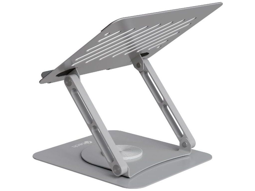 Quallis NTS-200 podporuje notebooky až do veľkosti 16" a jeho pevná hliníková konštrukcia zabezpečuje vysokú odolnosť, nosnosť a elegantný vzhľad. Na rozdiel od bežných stojanov je vybavený otočnou základňou s 360° otáčaním, čo umožňuje plynulé natáčanie notebooku bez nutnosti premiestňovania celej konštrukcie – ideálne pri prezentáciách, zdieľaní obrazovky alebo striedavej práci viacerých používateľov.