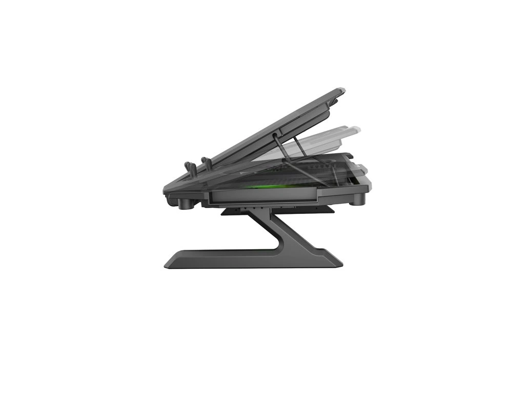 Stojan OXID 850 je vybaven účinným a bezpečným chladicím systémem založeným na čtyřech malých ventilátorech, které odvádějí teplo zpod notebooku, a jednom hlavním ventilátoru, který přivádí studený vzduch do notebooku. Správné umístění ventilátorů zajišťuje mimořádně účinné chlazení a třístupňová regulace rychlosti jejich otáčení účinně sníží teplotu notebooku i během nejzuřivějších bitev.