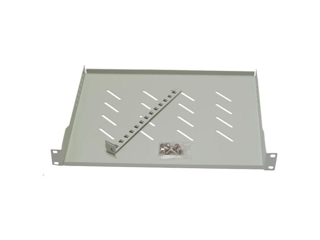Pevná polica pre 19" skrine, hĺbka 550 mm, predné a zadné uchytenie, nosnosť 45 kg.