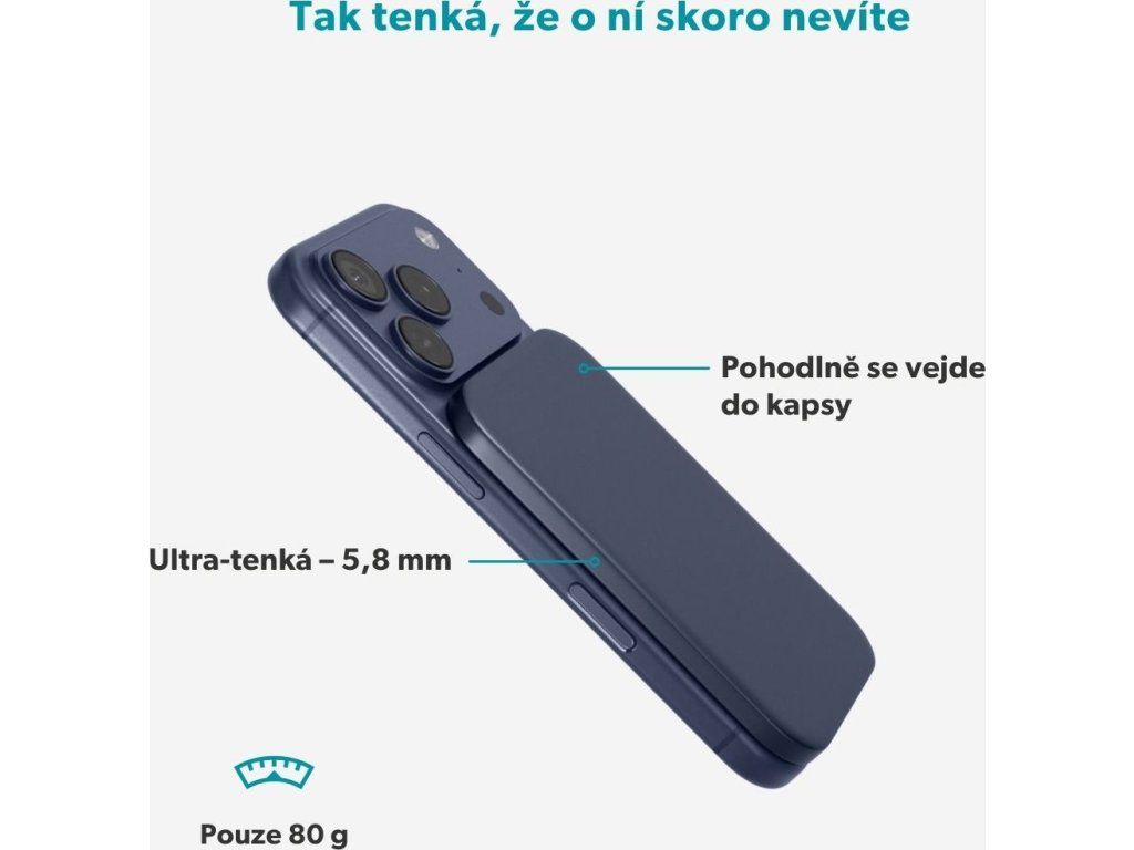 Epico UltraPack EM31b se díky kompatibilitě s MagSafe a Qi2 magneticky a bezpečně přichytí k telefonu a umožní pohodlné bezdrátové nabíjení bez kabelů. Ultratenké provedení s tloušťkou pouhých 5,8 mm se vejde do kapsy nebo malé tašky, takže o ní při každodenním přenášení ani nevíte.