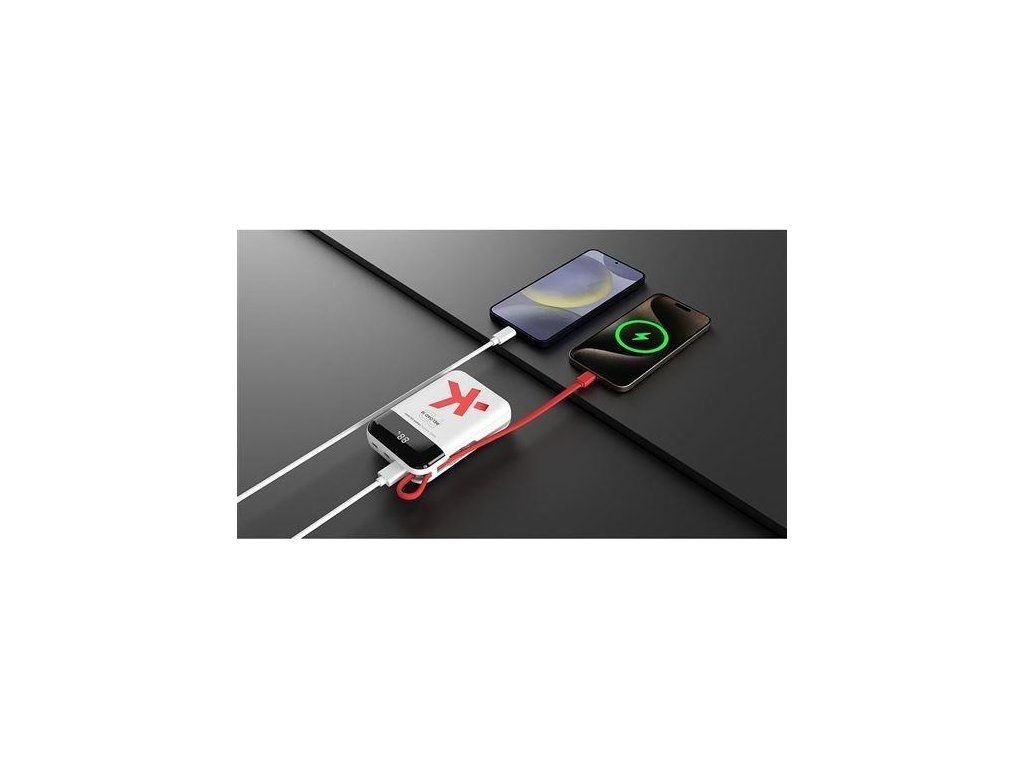 Powerbanka má ergonomický tvar a nízku hmotnosť, čo z nej robí ideálneho spoločníka na cesty. Integrovaný USB-C kábel, ktorý zároveň slúži ako praktické pútko na prenášanie, uľahčuje každodenné používanie. Vďaka displeju máte vždy prehľad o dostupnej Energii a stave nabíjania či dobíjania.