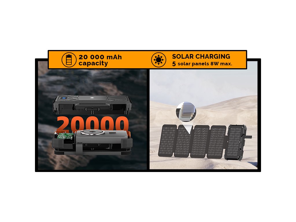 Viking solární outdoorová powerbanka TYR II 20000 mAh, bezdrátové nabíjení