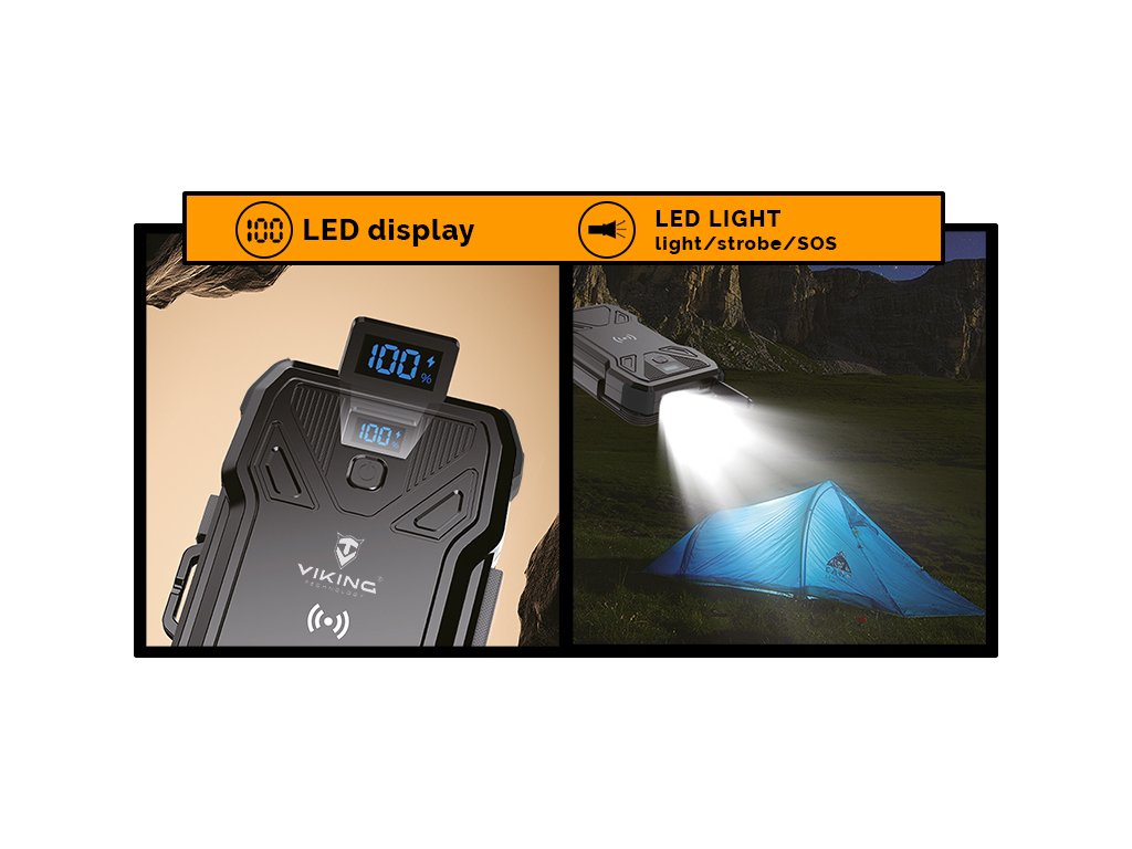 Ďalšou výhodou tejto vonkajšej powerbanky je jej prehľadný LED displej, ktorý zobrazuje stav kapacity batérie a priebeh nabíjania v percentách. To vám poskytuje presnejšie informácie a nemusíte sa spoliehať len na svietiace diódy. Môžete tiež využiť praktickú LED svietidlo so štyrmi svetelnými režimami – stály svit, bleskový režim alebo SOS svietenie.