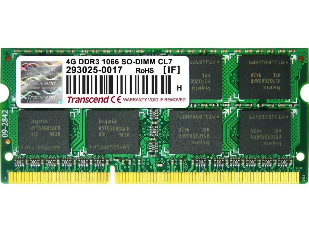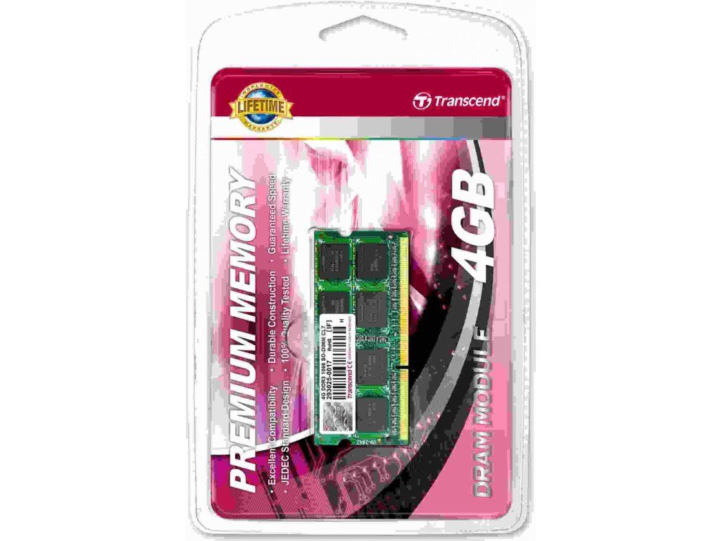 SODIMM DDR3 4GB 1066MHz TRANSCEND 2Rx8 CL7, maloobchod