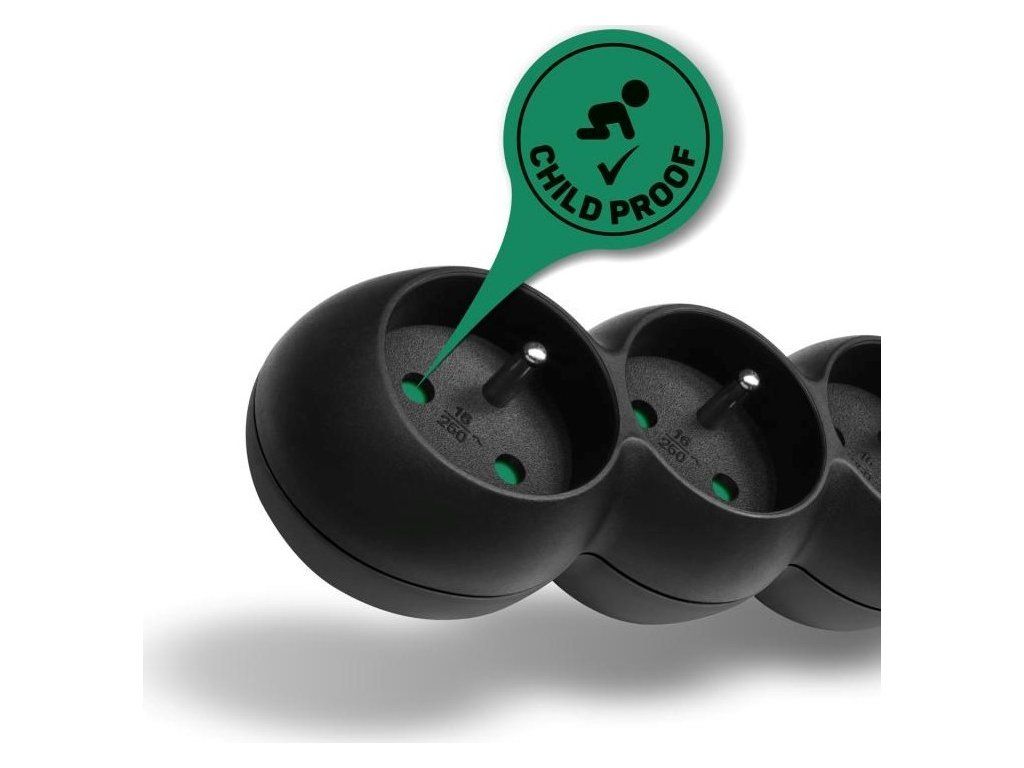 Prolongovací káblový prívod na 230V je vybavený hlavným sieťovým vypínačom, ktorý pri vypnutí úplne odpojí od prívodu elektrickú energiu všetkým zapojeným spotrebičom naraz. Extra výbavou je detská ochrana všetkých zásuviek – zásuvky sú prístupné iba v prípade zasunutia oboch vidlíc naraz, teda nie je možné zasunúť jednotlivé, napríklad skrutkovač alebo pletaciu ihlicu. Vďaka pootočeniu zásuviek o 45° je možné používať aj objemnejšie napájacie adaptéry alebo uhlyové koncovky. Vysúvateľné očko v hornej časti zásuvkového modulu umožňuje zavesenie alebo pevnú inštaláciu na stenu (s výhodou využijete napr. v dielňach a garážach). Výrobok bol testovaný a certifikovaný v euróskom testovacom centre a spĺňa najprísnejšie bezpečnostné požiadavky a najnovšie normy, takže umožňuje zapojenie spotrebičov s celkovým príkonom až 2300 W.