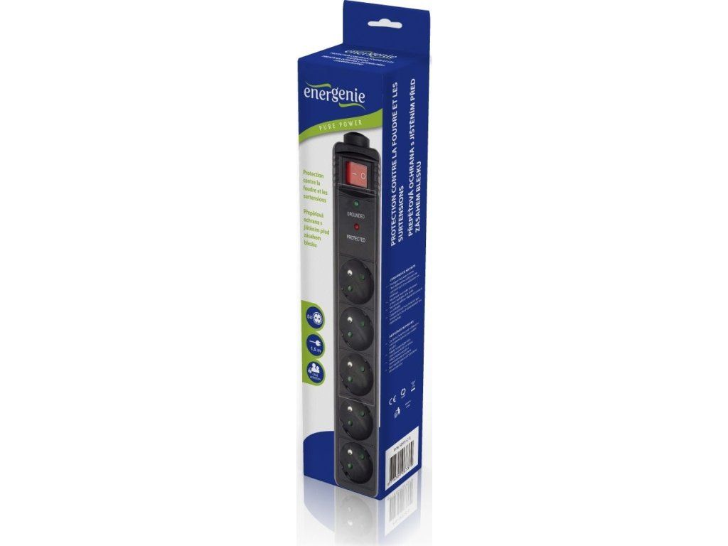 GEMBIRD Prepäťová ochrana, 5 zásuviek, 1,5 m, čierna