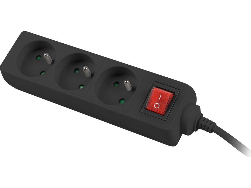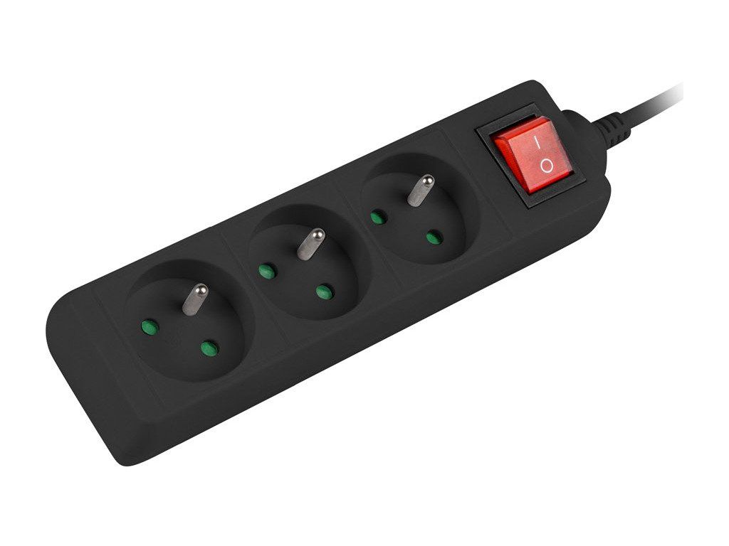 Prodlužovací kabel Lanberg PS1, 3 zásuvky, 1,5m, vypínač, černá