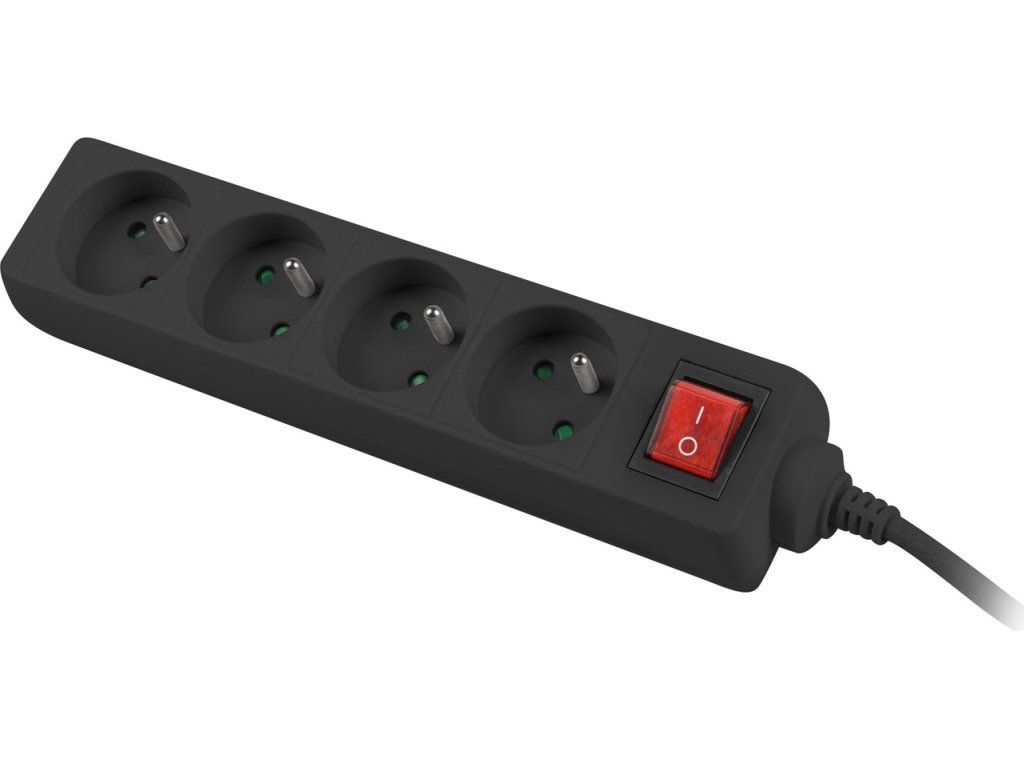 Prodlužovací kabel Lanberg PS1, 4 zásuvky, 1,5m, vypínač, černá
