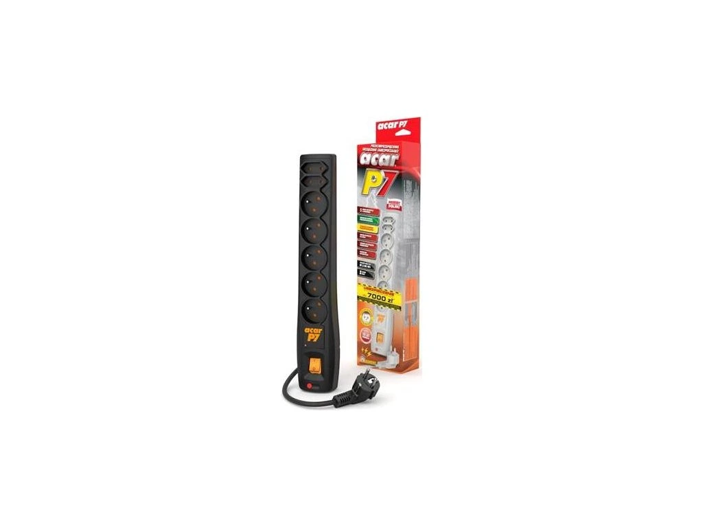 Acar P7 3m kabel, 5+2 zásuvek, přepěťová ochrana, černá