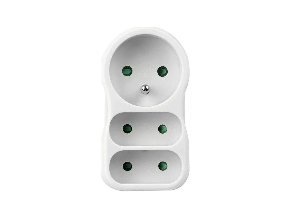 1x kruhová zásuvka + 2x plochá zásuvka 250 V~/ 2×2,5A 1x10A. Max 2300W.