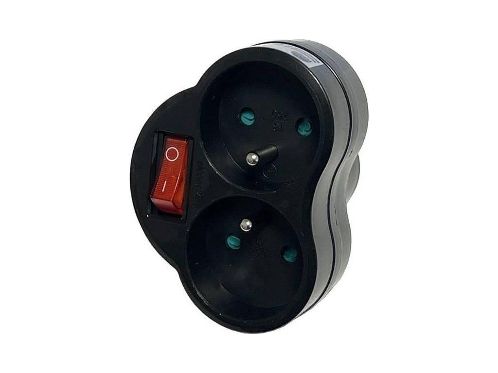 Konnoc DX-R2S rozbočka dvojzásuvka s vypínačem černá