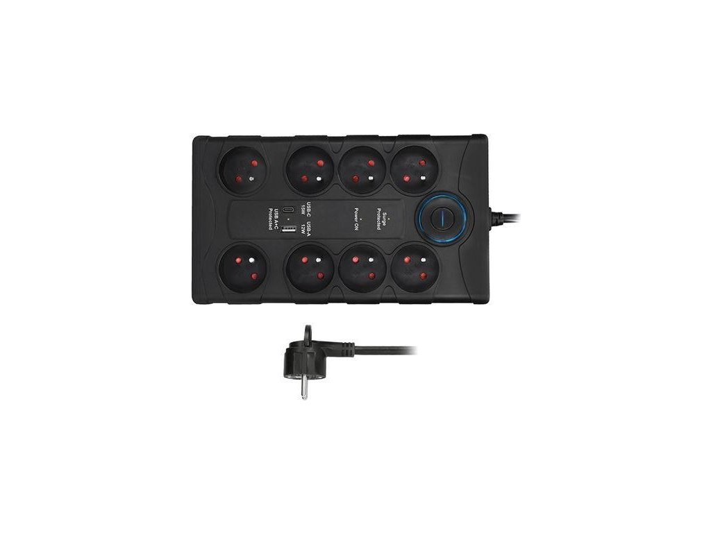 Spoľahlivá prepaťová ochrana s integrovanou USB nabíjačkou chráni vaše zariadenia pred náhlymi výkyvmi napätia. Vďaka ôsmim zásuvkám a dvom USB portom je ideálna do domácnosti aj kancelárie. S maximálnou záťažou až 3680 W zvládne aj energeticky náročnejšie spotrebiče.