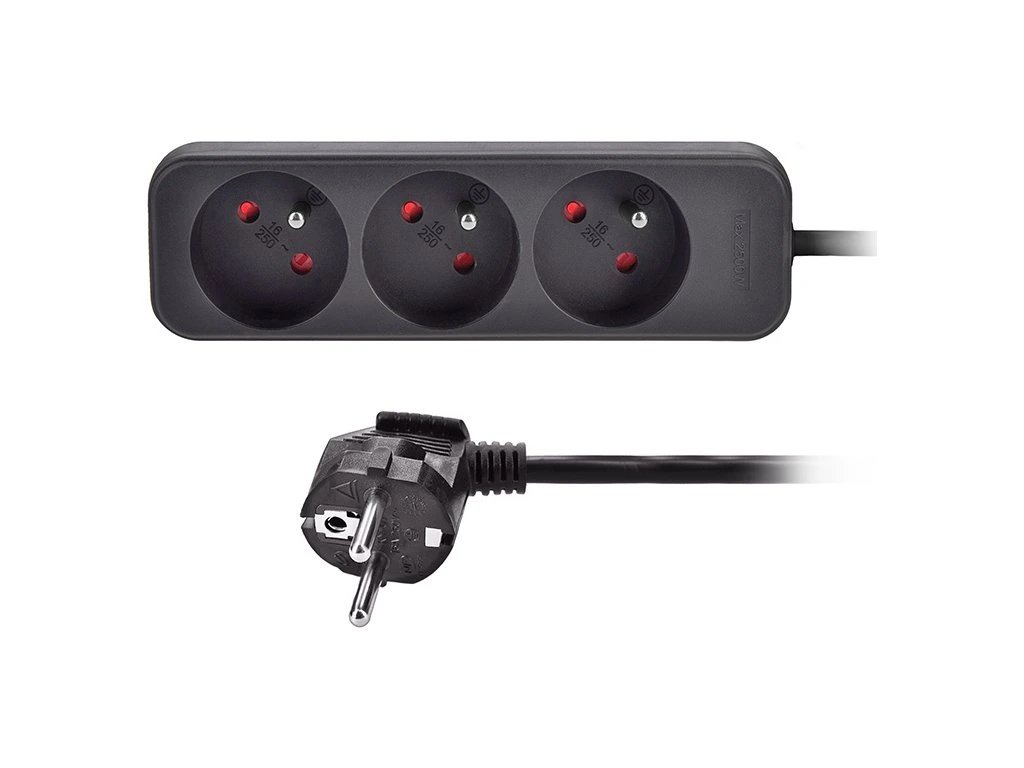 Praktický čierny predlžovací kábel s dĺžkou 3 metre a tromi zásuvkami umožní priviesť elektrickú energiu tam, kde nie je k dispozícii pevná zásuvka. Ideálny pre domáce aj kancelárske využitie.