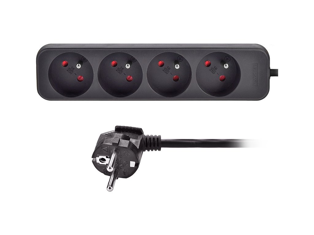 Praktický čierny predlžovací kábel s dĺžkou 3 metre a štyrmi zásuvkami umožní dodať elektrickú energiu tam, kde nie je dostupná pevná zásuvka. Ideálny na domáce aj kancelárske použitie.
