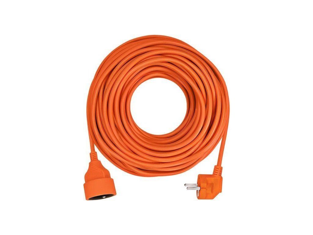 Oranžový predlžovací kábel s dĺžkou 30 metrov a jednou zásuvkou je ideálny na predĺženie elektrickej energie na záhrade alebo v dielni. Vďaka trom vodičom vrátane uzemnenia je vhodný na pripojenie akýchkoľvek zariadení s trípólovou uzemnenou aj dvojpólovou neuzemnenou vidlicou prívodnej šnúry. Farebné odlíšenie od okolia zvyšuje bezpečnosť pri práci.