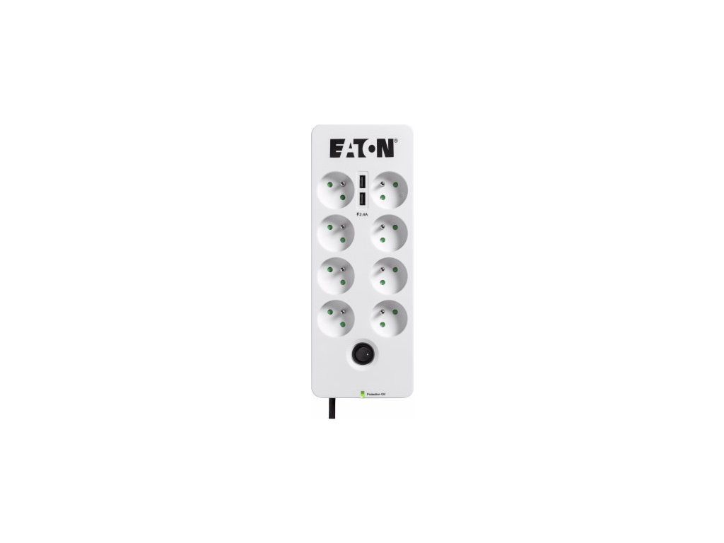 Eaton Protection Box 8 Tel@ USB FR, prepäťová ochrana, 8 zásuviek, 2x USB nabíjačka, 1m