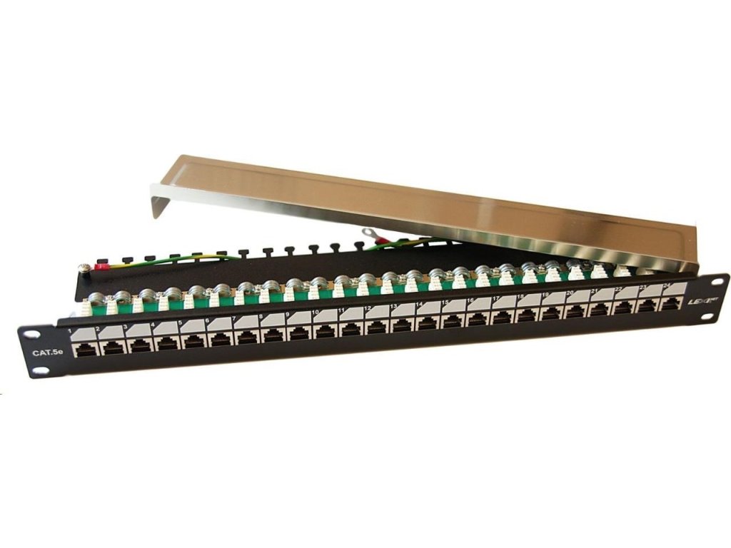 19" Patch panel EXCLUSIVE s 24 portmi, FTP (SFTP, STP), Cat 5e, s hrotom