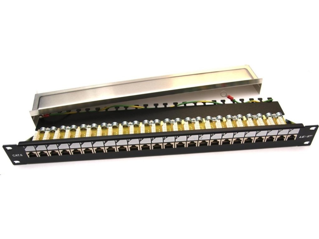 19" Patch panel EXCLUSIVE s 24 portmi, FTP (SFTP, STP), Cat 6, s hrotom