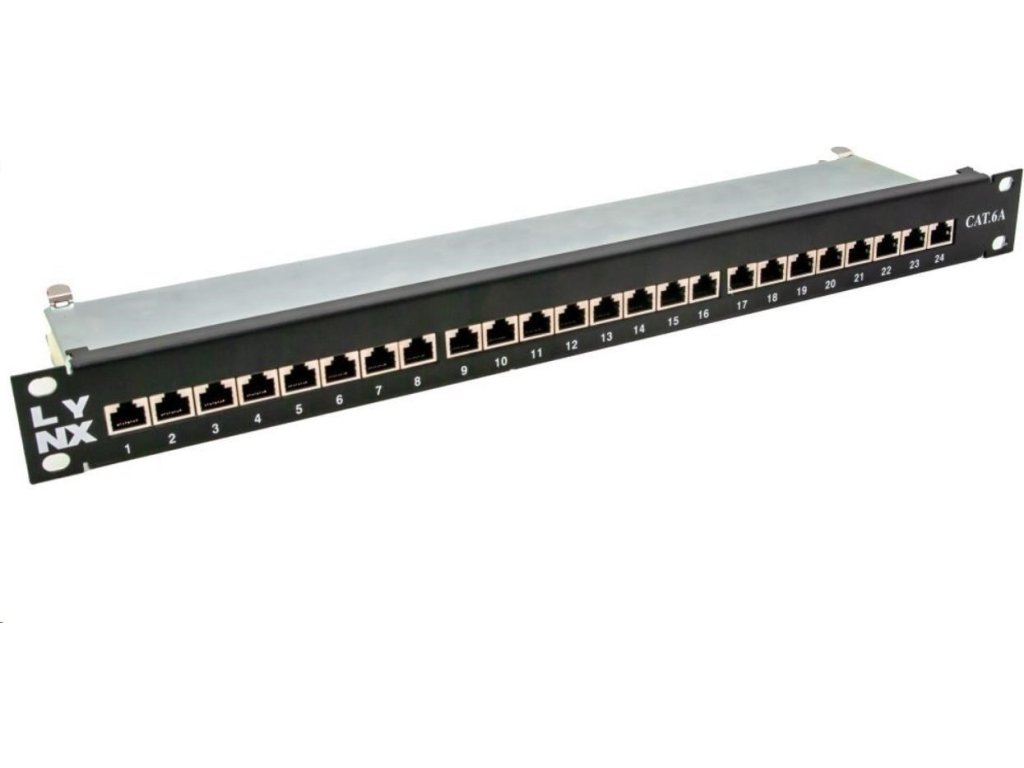 19" Patch panel LYNX 24port, STP, Cat6A, krone, čierny