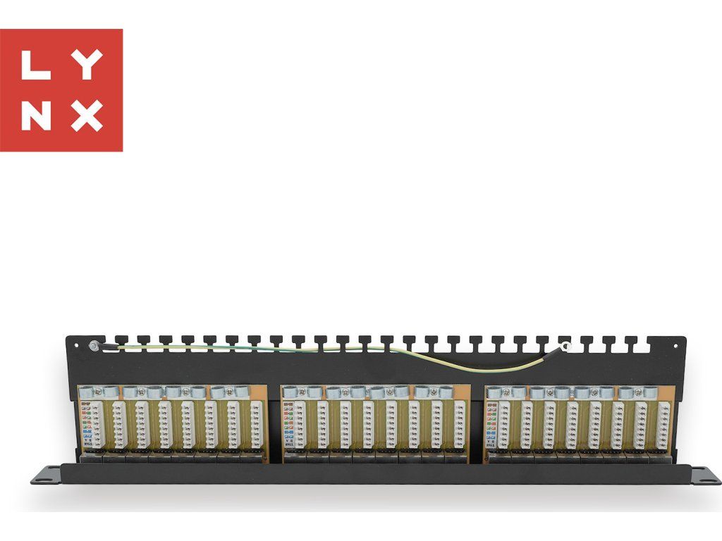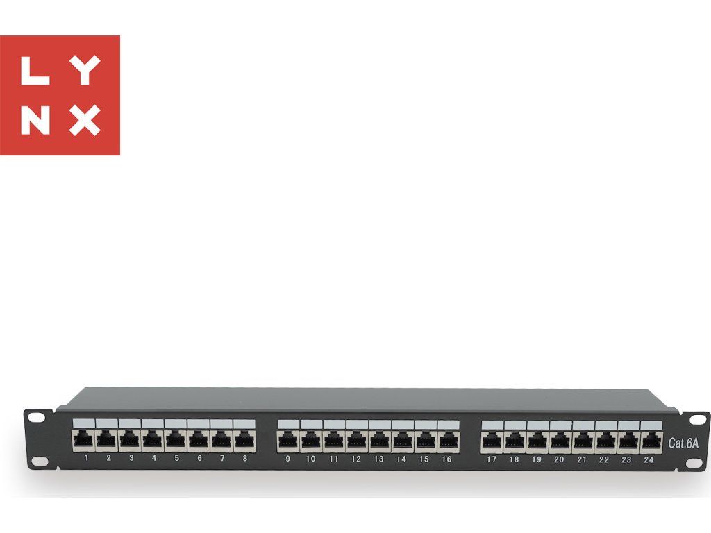 LYNX 19" patch panel 24-port, STP Cat6a, 50µ, stíněný, černý