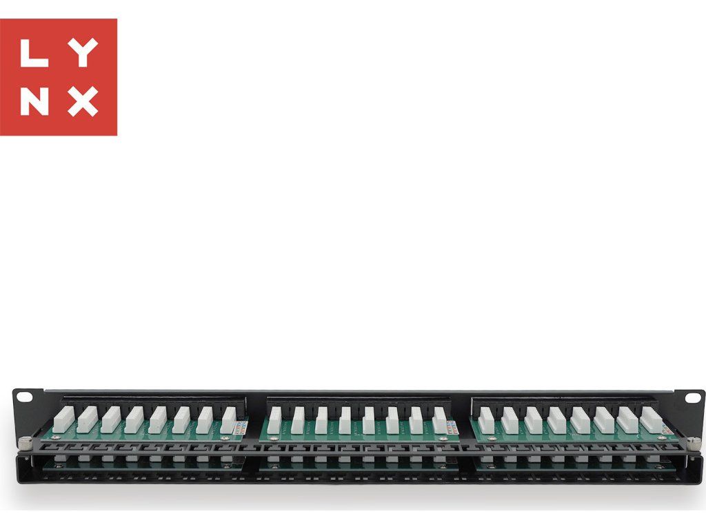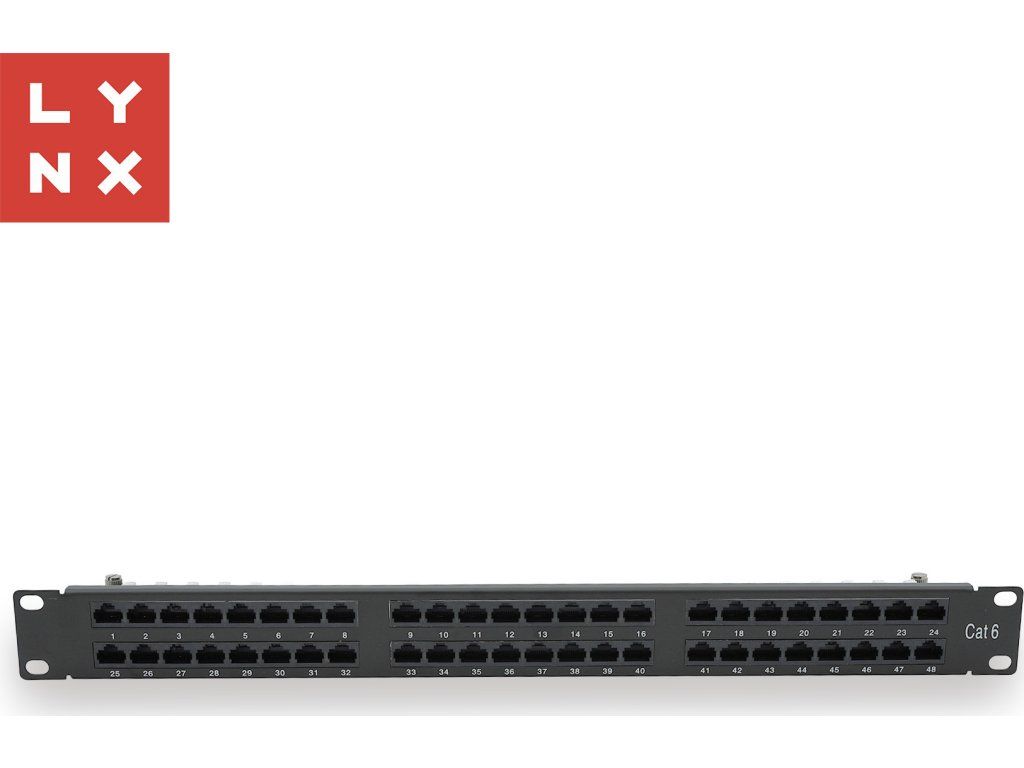 LYNX 19" patch panel 48-port, UTP Cat6, 50µ, nestíněný, černý