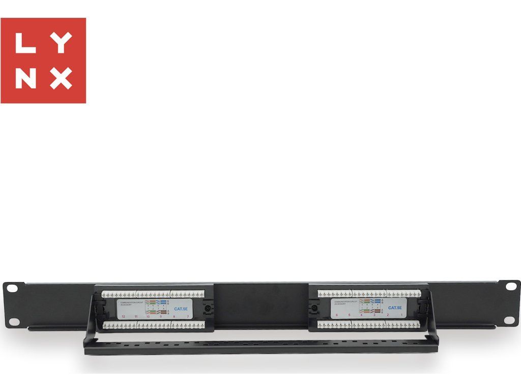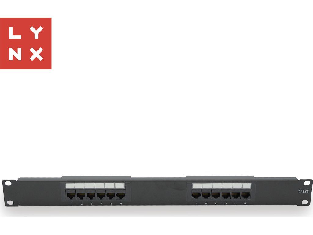 LYNX 19" patch panel 12-port, UTP Cat5e, 50µ, nestíněný, černý