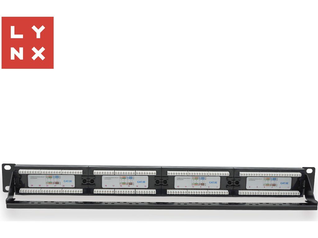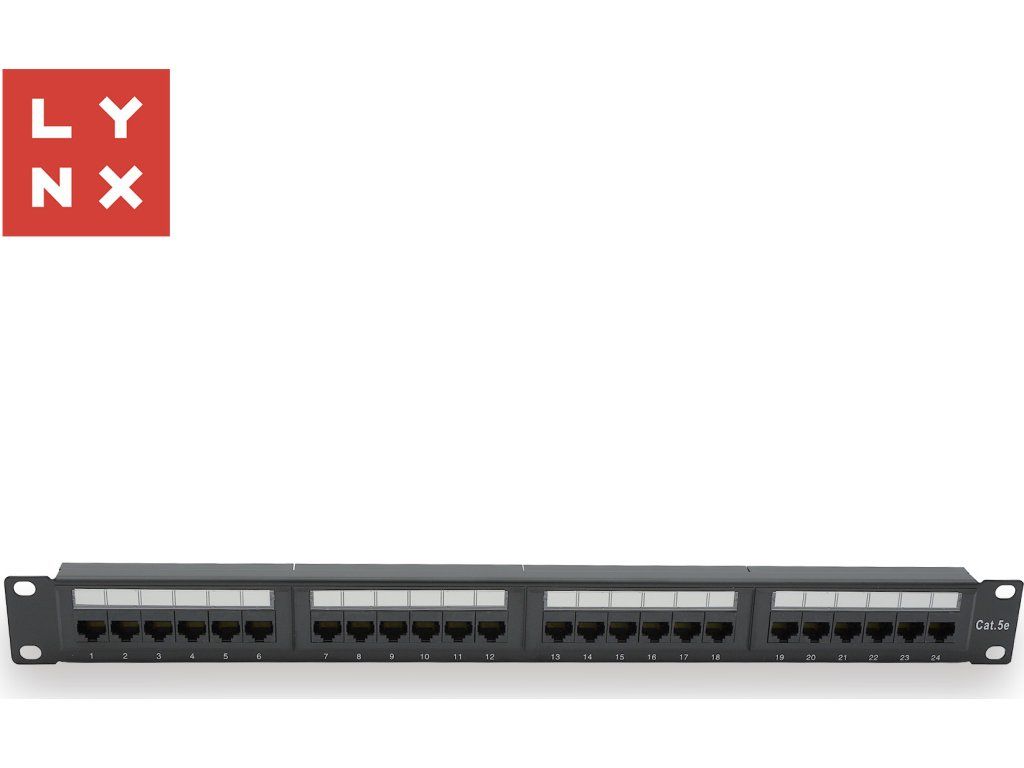 LYNX 19" patch panel 24-port, UTP Cat5e, 50µ, nestíněný, černý