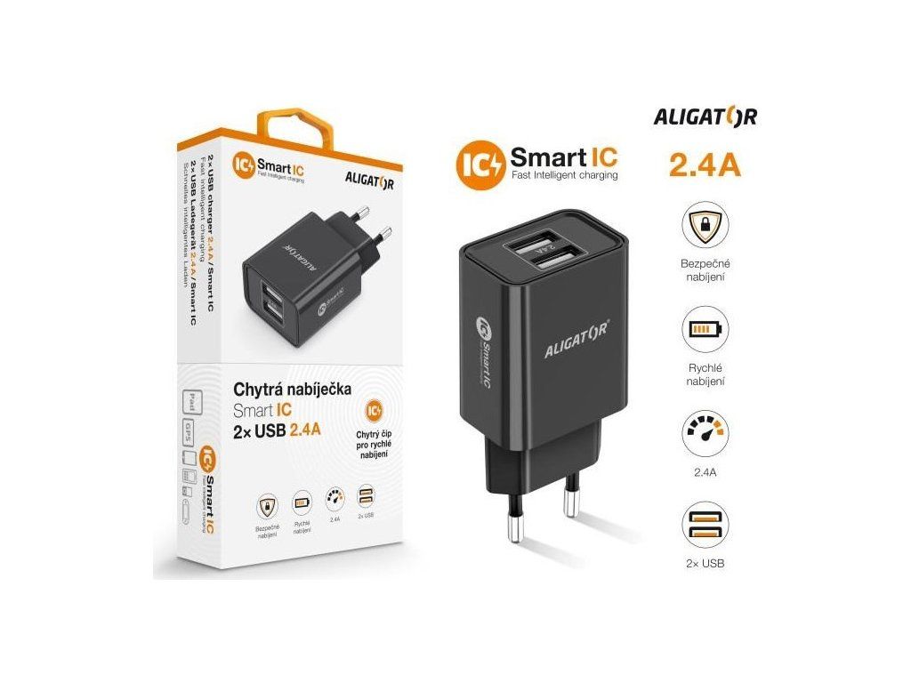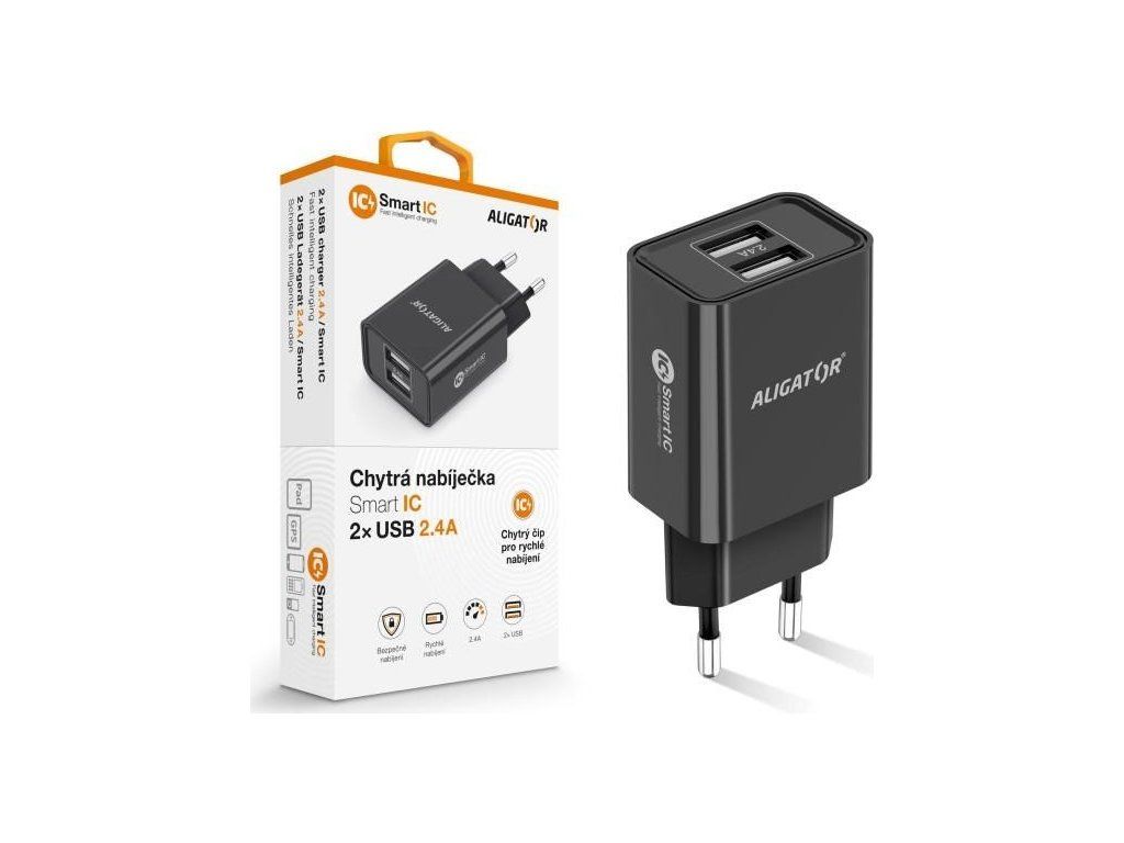 Aligator síťová nabíječka, 2x USB, smart IC, 2,4 A, černá