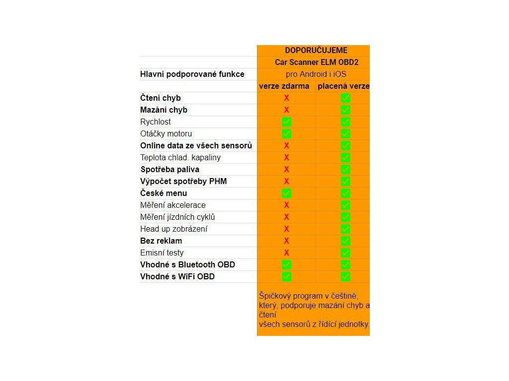 Ověřená OBD II diagnostika s vysokou kompatibilitou a výbornou diagnostickou aplikacíke stažení zdarma v demo verzi s možností placeného rozšíření.