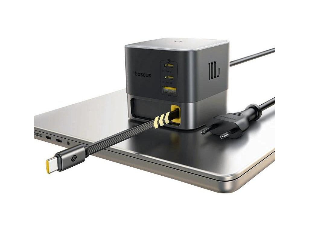 *Super Gan Baseus stolní nabíječka 2 porty typu c + 1 port USB nabíjecí stanice se 100w zatahovacím kabelem typu c - zástrčka / černá