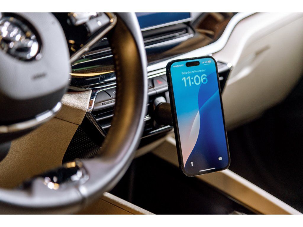 Díky integrovaným, silným, průmyslovým magnetům k držáku pevně přilne jakýkoli magnetický povrch. Spolehlivě udrží zařízení kompatibilní s MagSafe, tedy iPhone 12 a novější. Balení navíc obsahuje magnetický kroužek, který nalepíte na zadní stranu jakéhokoliv chytrého telefonu a můžete jej na magnetický držák snadno připevnit.