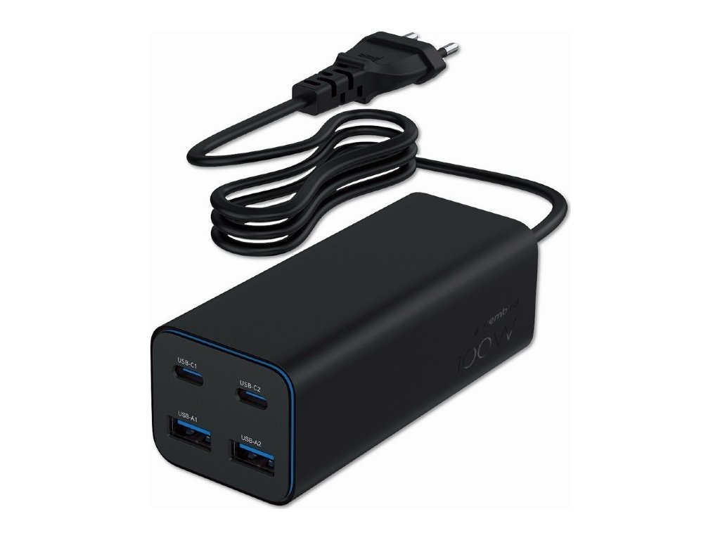 Gembird 100W adaptér, 2x USB-C, 2x USB-A
