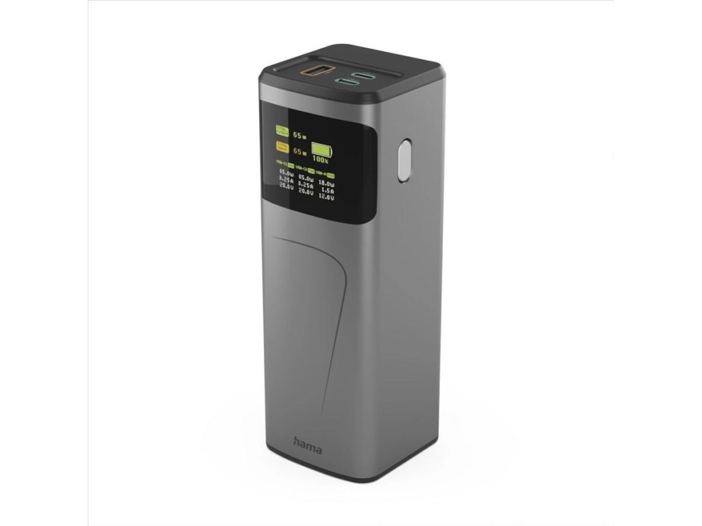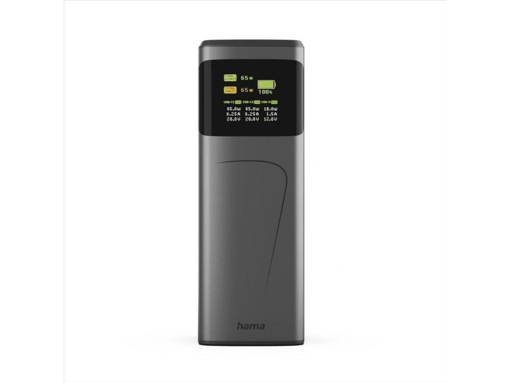 Hama High Power 65 W, powerbanka, 20000 mAh, 2x USB-C, 1x USB-A, PD, QC, displej