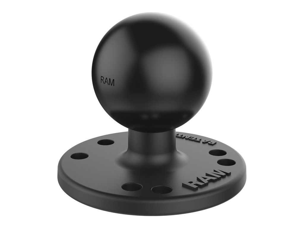 RAM-202U kruhový adaptér / úchyt na rovné povrchy s 1,5" čepem. Adaptér má průměr 6,35 cm a má předvrtaných 7 děr, z toho 4 dle průmyslového vzoru děr AMPS.