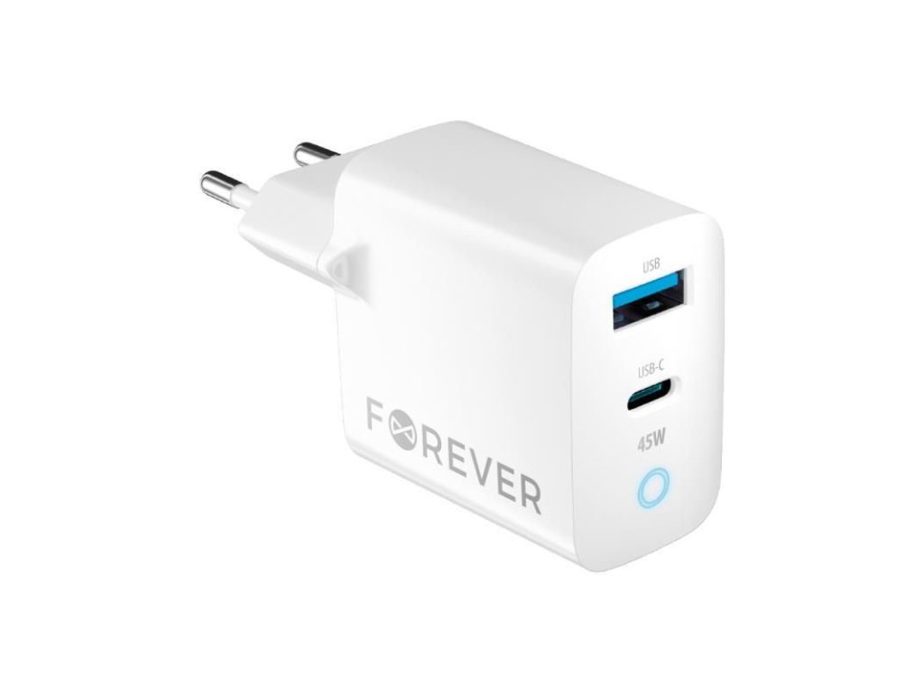 Rychlonabíječka do sítě Forever GaN TC-06-45AC GaN PD QC 1x USB-C 1x USB 45W bílá