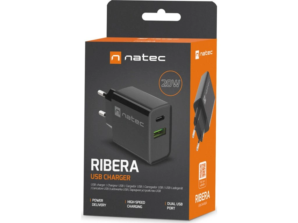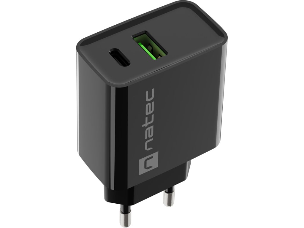 Universální nabíječka Natec RIBERA 20W 1X USB-A + 1X USB-C, černá