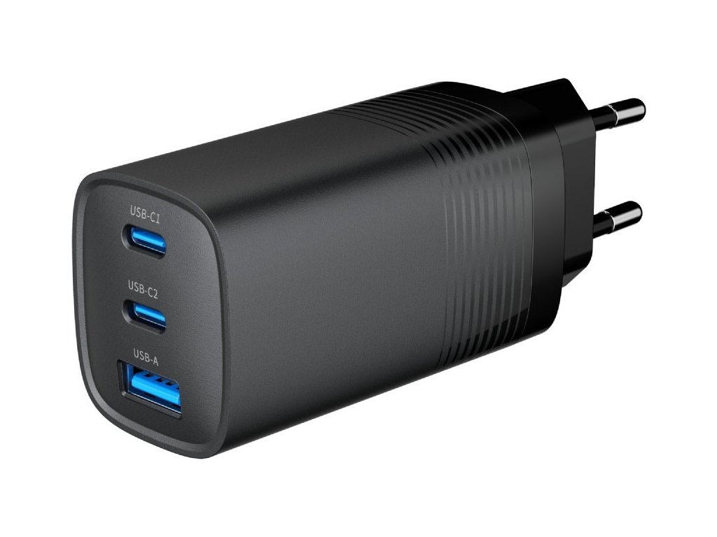 univerzálna USB nabíjačka ENERGENIE 220V/1x USB + 2x USB typ C, GaN PD QC 65W, čierna