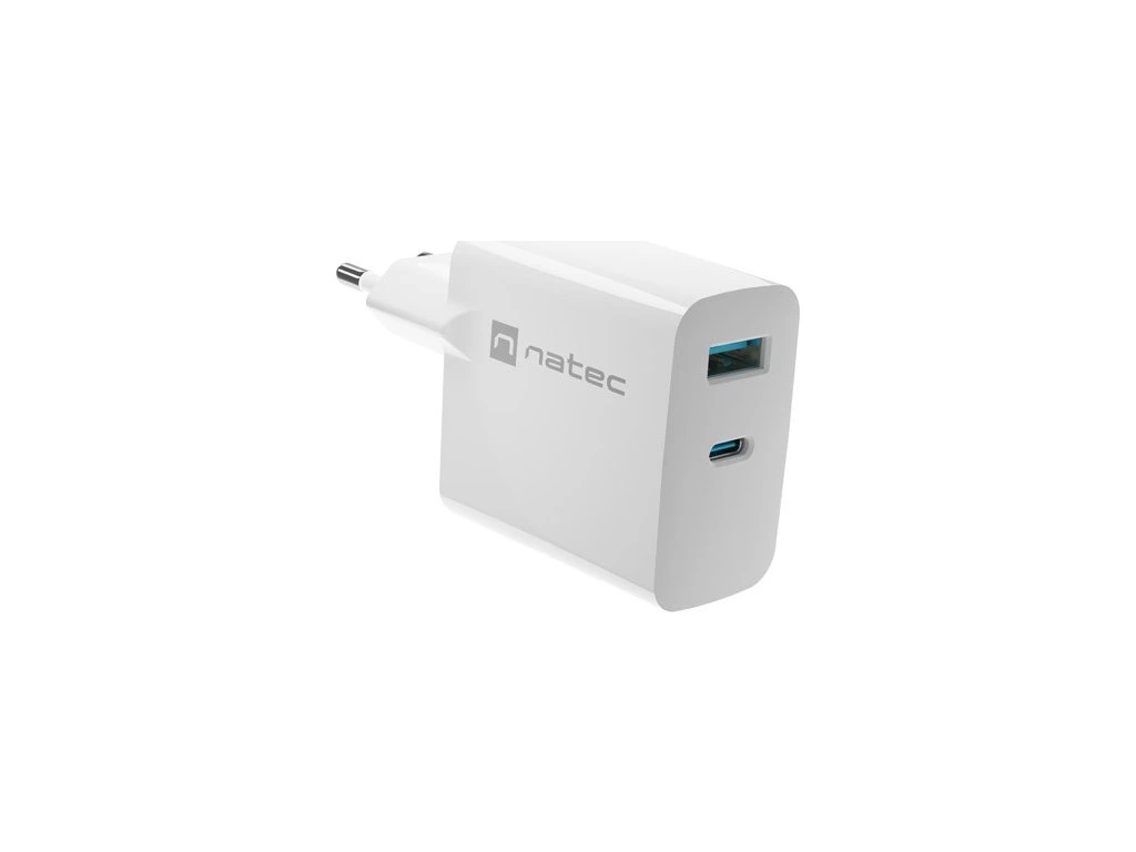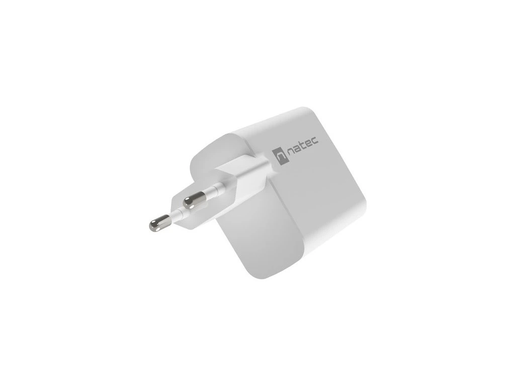 Univerzální USB nabíječka Natec RIBERA GaN 1X USB-A + 1X USB-C 65W, Bílá