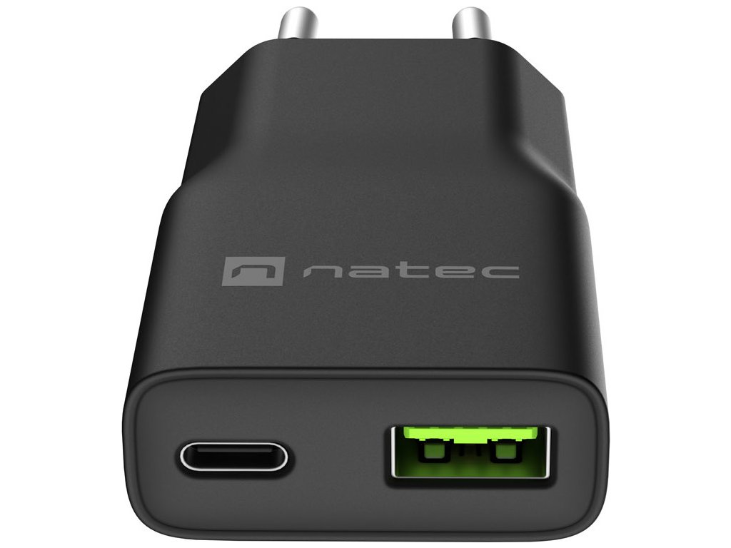 Univerzální USB nabíječka Natec RIBERA GaN SLIM, 20 W, 1X USB-A + 1X USB-C, Černá