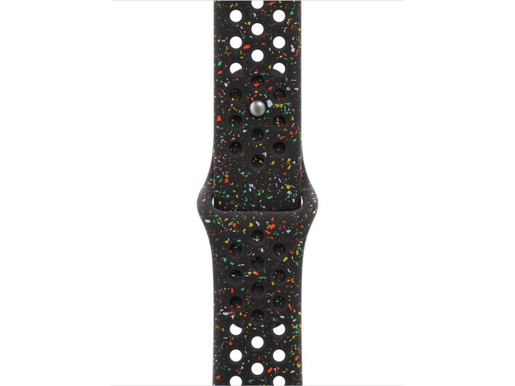 Tenhle sportovní řemínek Nike má vylisované otvory pro větší vzdušnost, je odolný, pevný a přitom překvapivě poddajný. Obsahuje barevné vločky, které tvoří náhodné vzory, takže každý řemínek je originál. Jeho hladký, hutný materiál se elegantně ovine kolem zápěstí a příjemně sedí. A zapíná se na hliníkový kolíček s matným povrchem, do kterého je pečlivě vygravírované logo Nike Run.